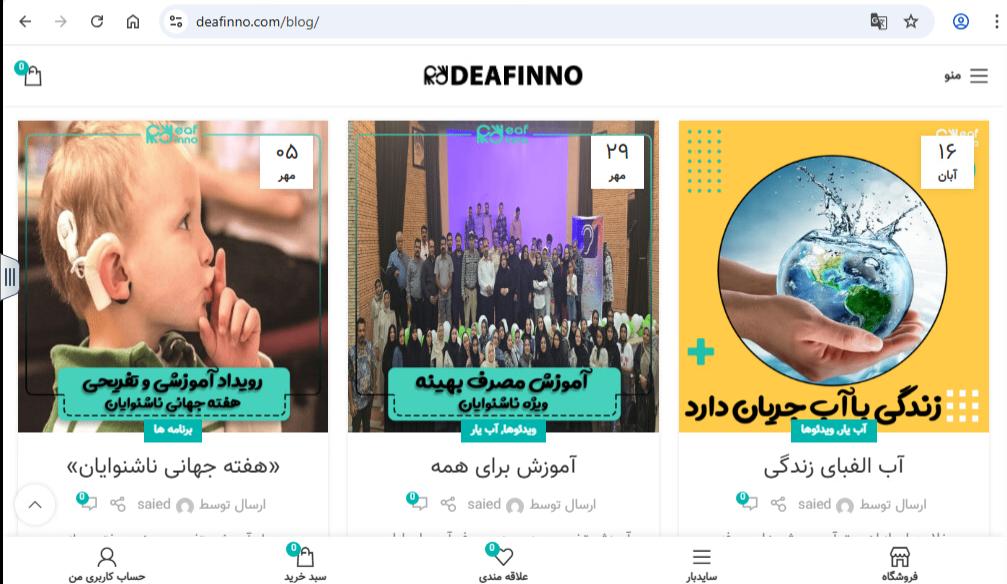 مدیر دفتر توسعه پایدار، مدیریت مصرف و مطالعات اجتماعی شرکت آب و فاضلاب مشهد اعلام کرد: گروه «دفینو» بهعنوان منتخب بخش ایده در دومین رویداد ملی نوآوریهای اجتماعی آب شهری، بخش ویژه آموزشهای «آب و مدیریت مصرف» را برای ناشنوایان و کمشنوایان راهاندازی میکند. این بخش در تارنما و سکوی تعاملی این گروه فعال خواهد شد.